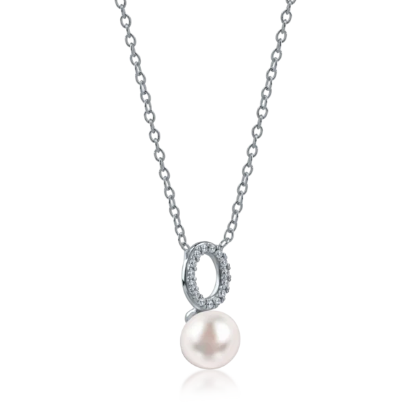 Lant cu pandantiv rotund si perla sintetica din aur alb