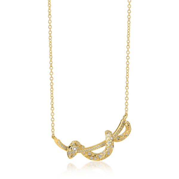 Lant cu pandantiv sarpe din aur galben cu diamante incolore si negre de 0.5ct