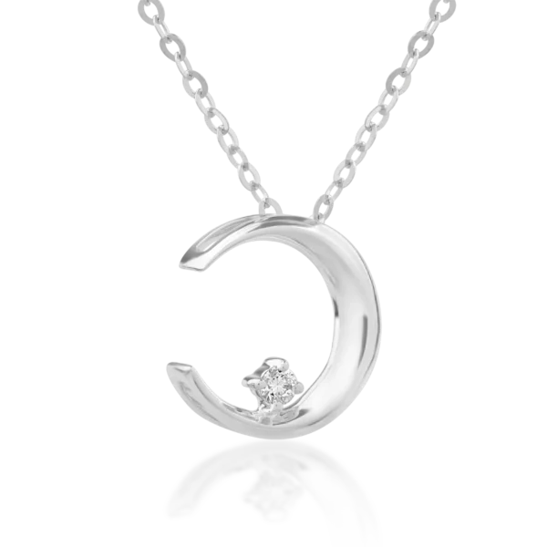 Lant cu pandantiv semiluna din aur alb cu diamant de 0.016ct