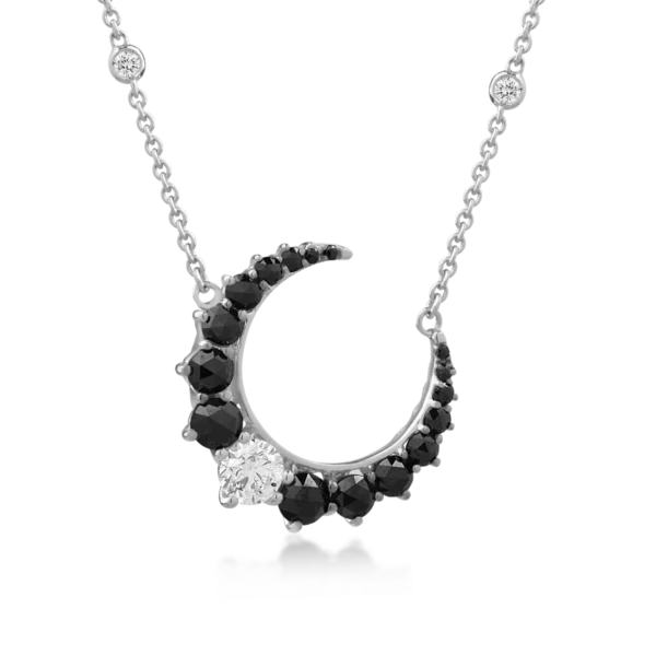 Lant cu pandantiv semiluna din aur alb cu diamante negre rose de 1.03ct si diamante transparente de 0.65ct