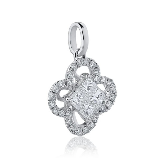 Pandantiv din aur alb cu diamante princess si rotunde de 0.4ct