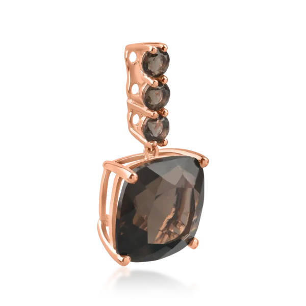 Pandantiv din aur roz cu cuart fumuriu cushion si rotund de 5.54ct
