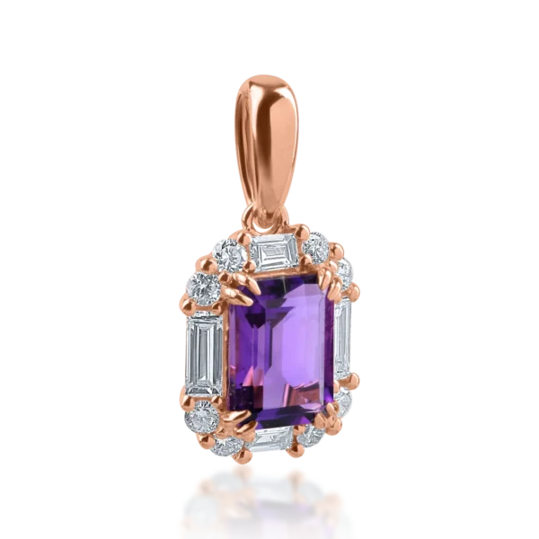 Pandantiv din aur roz cu ametist de 0.97ct si diamante baguette si rotunde de 0.34ct