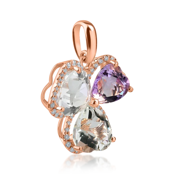 Pandantiv din aur roz cu ametiste heart de 6.2ct si diamante de 0.2ct