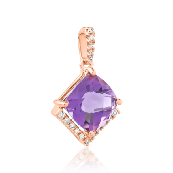 Pandantiv din aur roz cu ametist cushion de 2.3ct si diamante de 0.08ct