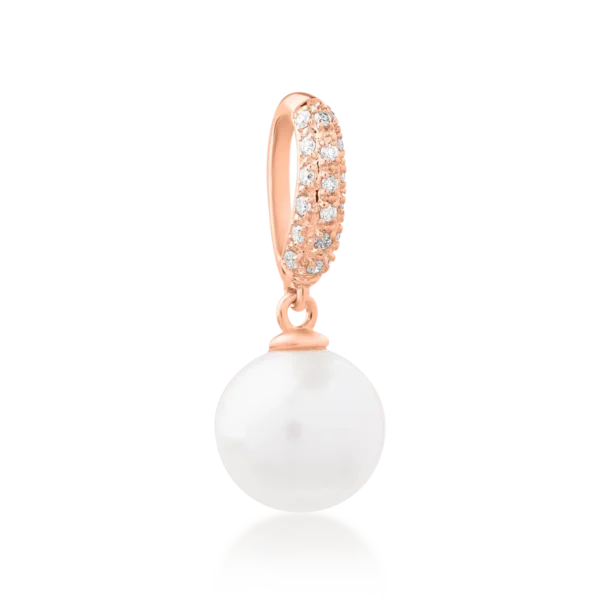 Pandantiv din aur roz cu perla de cultura de 6.38ct si diamante de 0.3ct