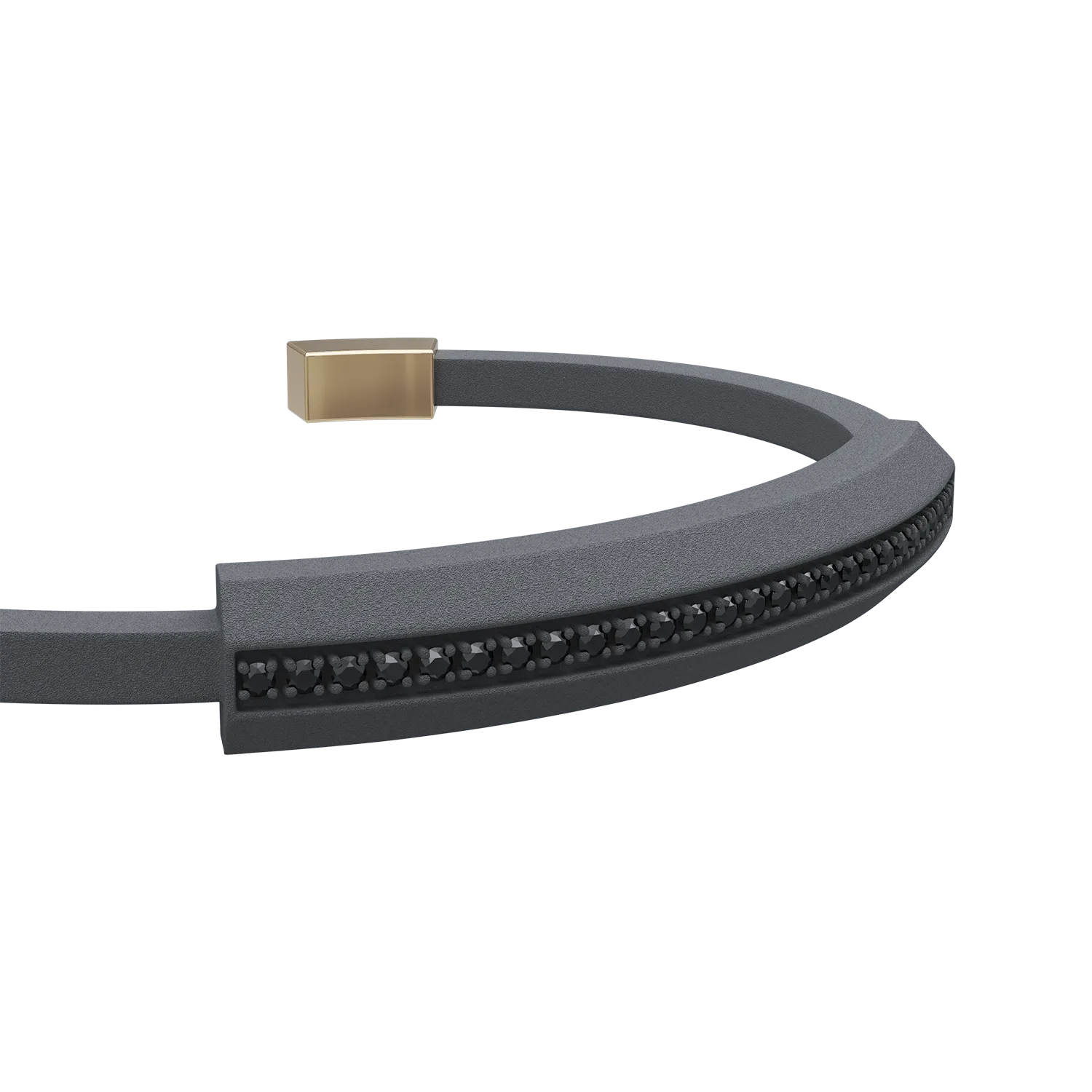 Noutatea materialelor folosite in crearea bijuteriilor este parte din esenta colectiei FLIGHT. In bratara cuff cu diamante negre, titanul, metal al viitorului, inspira duritate, rezistenta si durabilitate. Iar impreuna cu simbolul skyscraper-ului si insertiile din aur galben construieste un design memorabil.