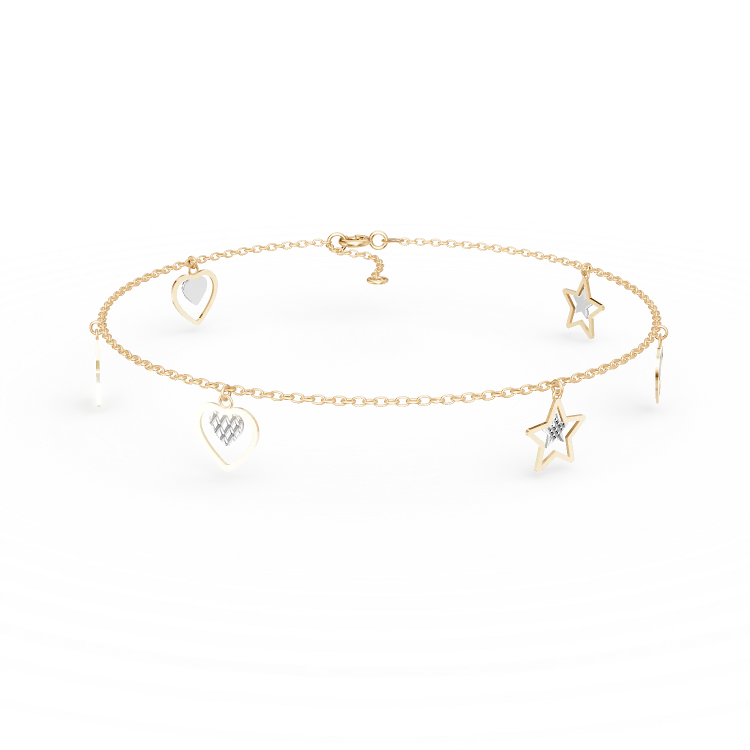 Bijuteriile din aur sunt intotdeauna o alegere potrivita. Cu un design fluid, aceasta bratara cu charmuri din aur alb-galben se adapteaza perfect look-ului tau de zi cu zi. TEILOR te inspira sa iti creezi de fiecare data o aparitie memorabila.