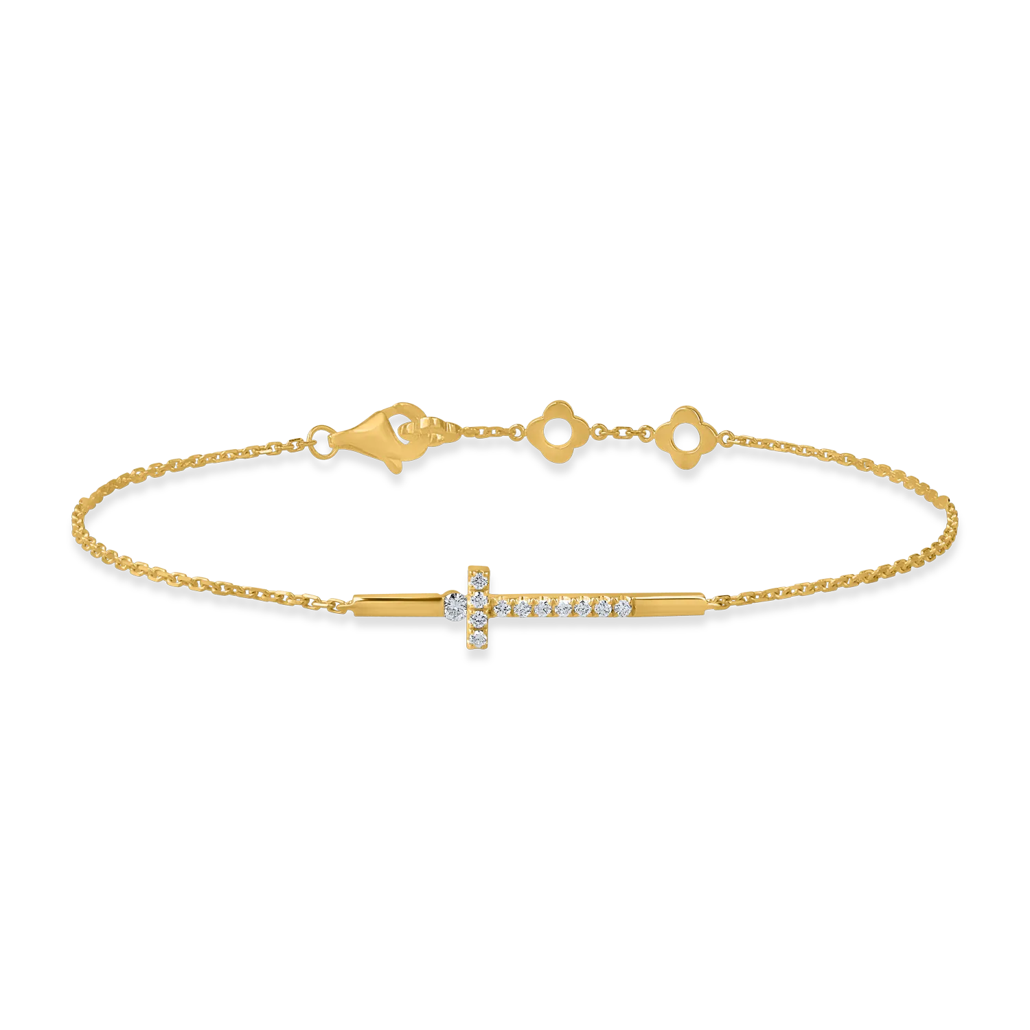 Bratara cu cruce din aur galben cu diamante de 0.09ct