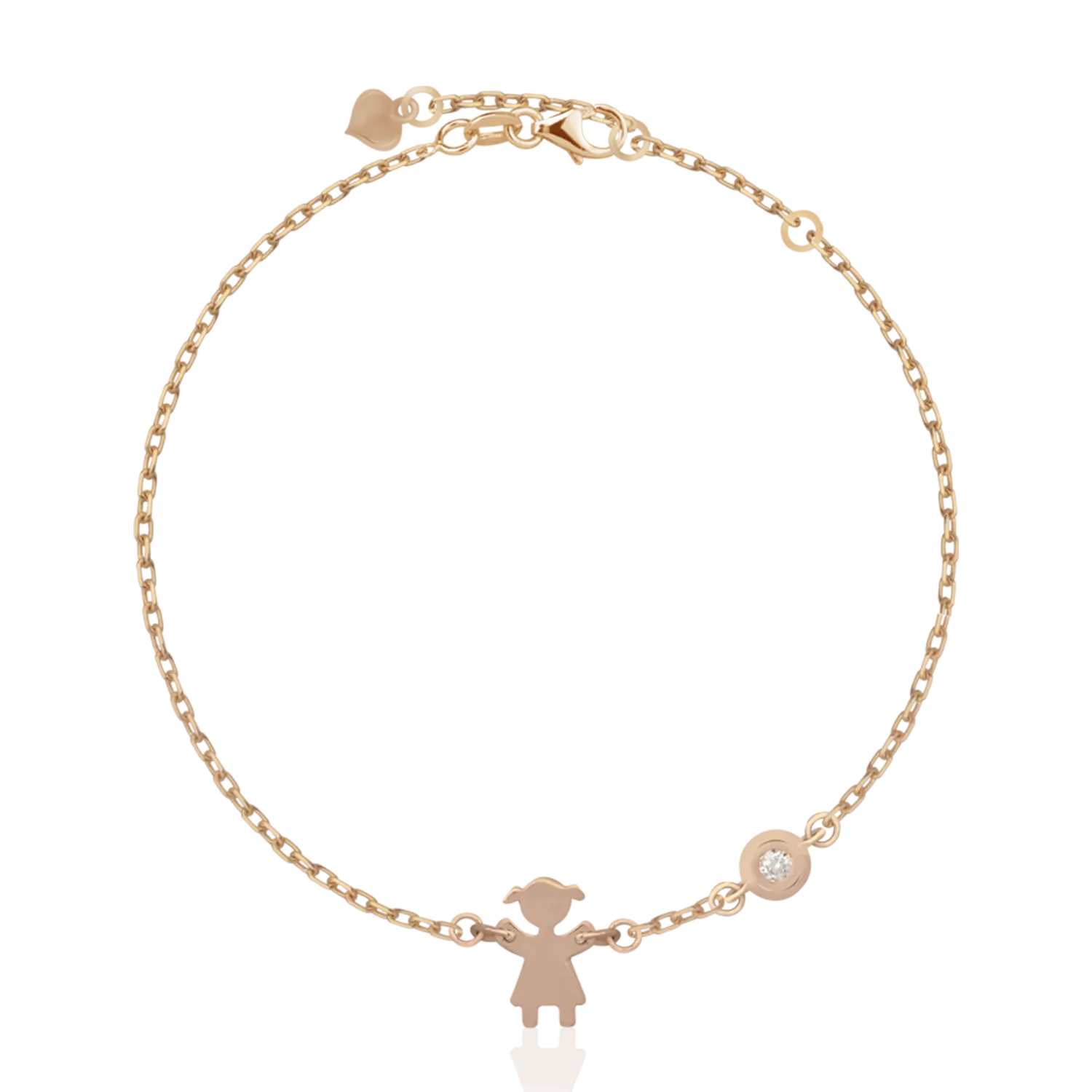 Bratara cu fetita din aur roz cu diamant de 0.02ct
