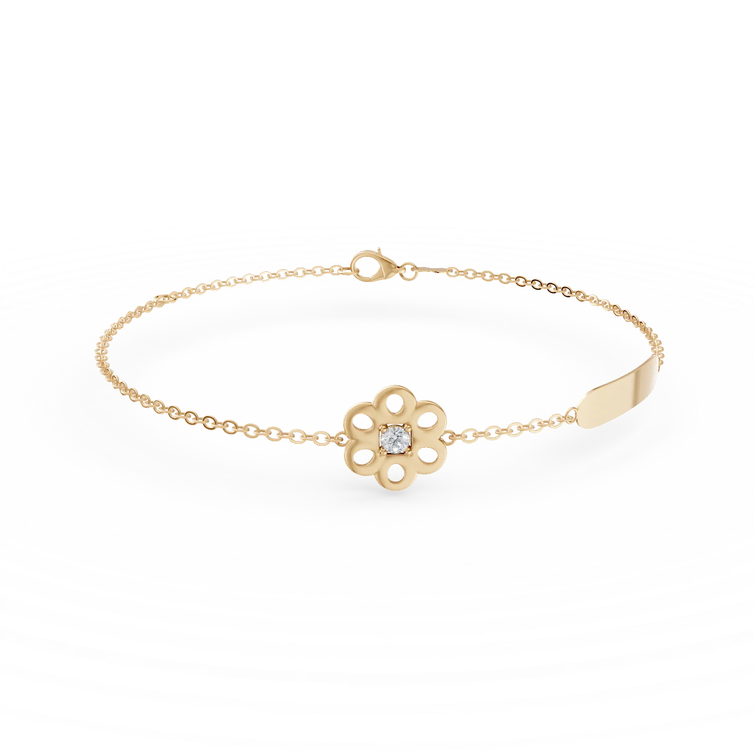 Bratara cu floare din aur galben cu diamant de 0.02ct pentru copii