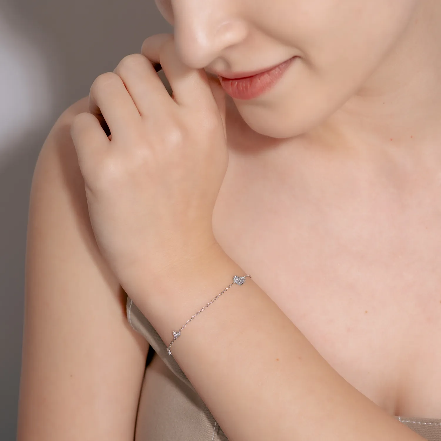 Bratara cu inimi din aur alb cu zirconii