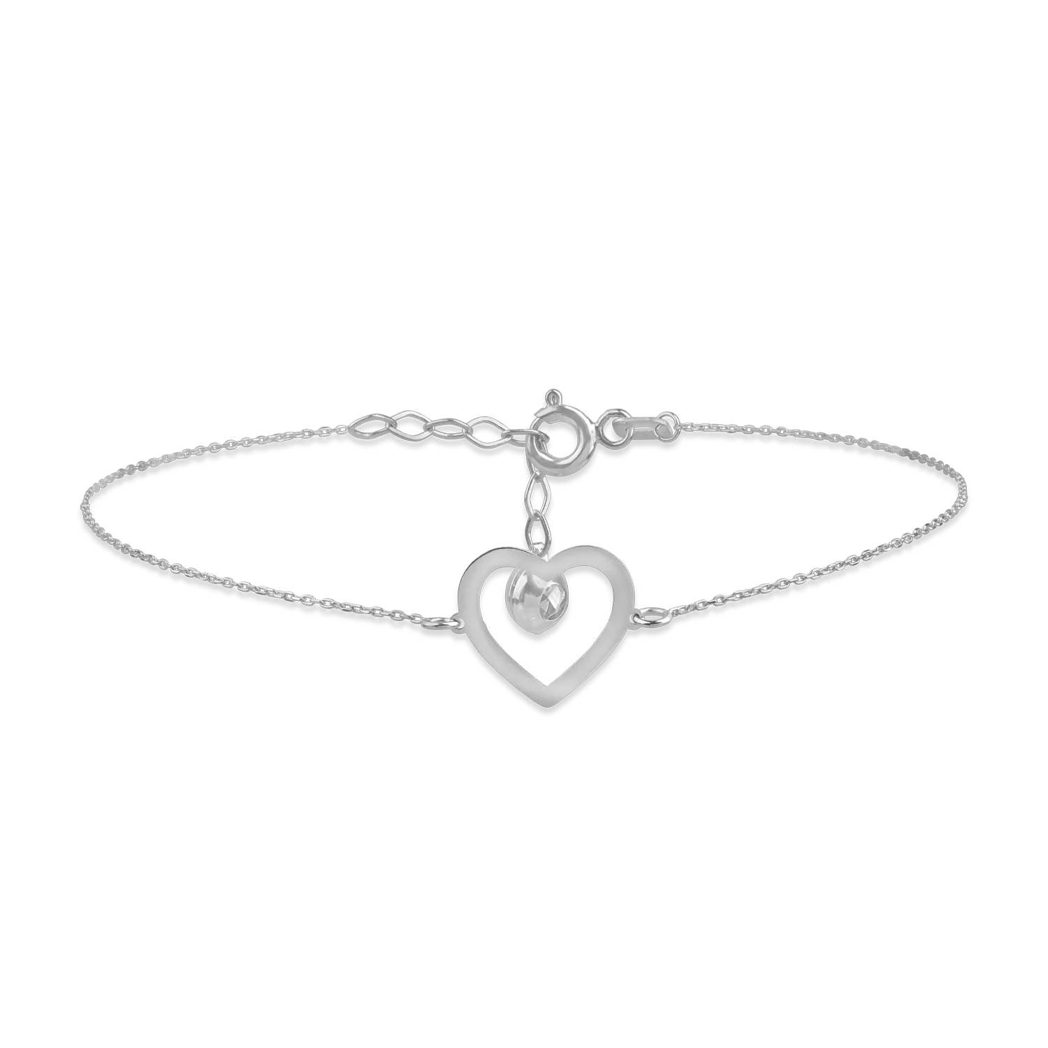 Găsește bijuteria ideală pentru tine! Nuanta metalului prețios și designul simetric al acestei brățări cu inimă din aur alb creează o armonie de forme și contururi. O nouă oportunitate, un nou început alături de TEILOR.
