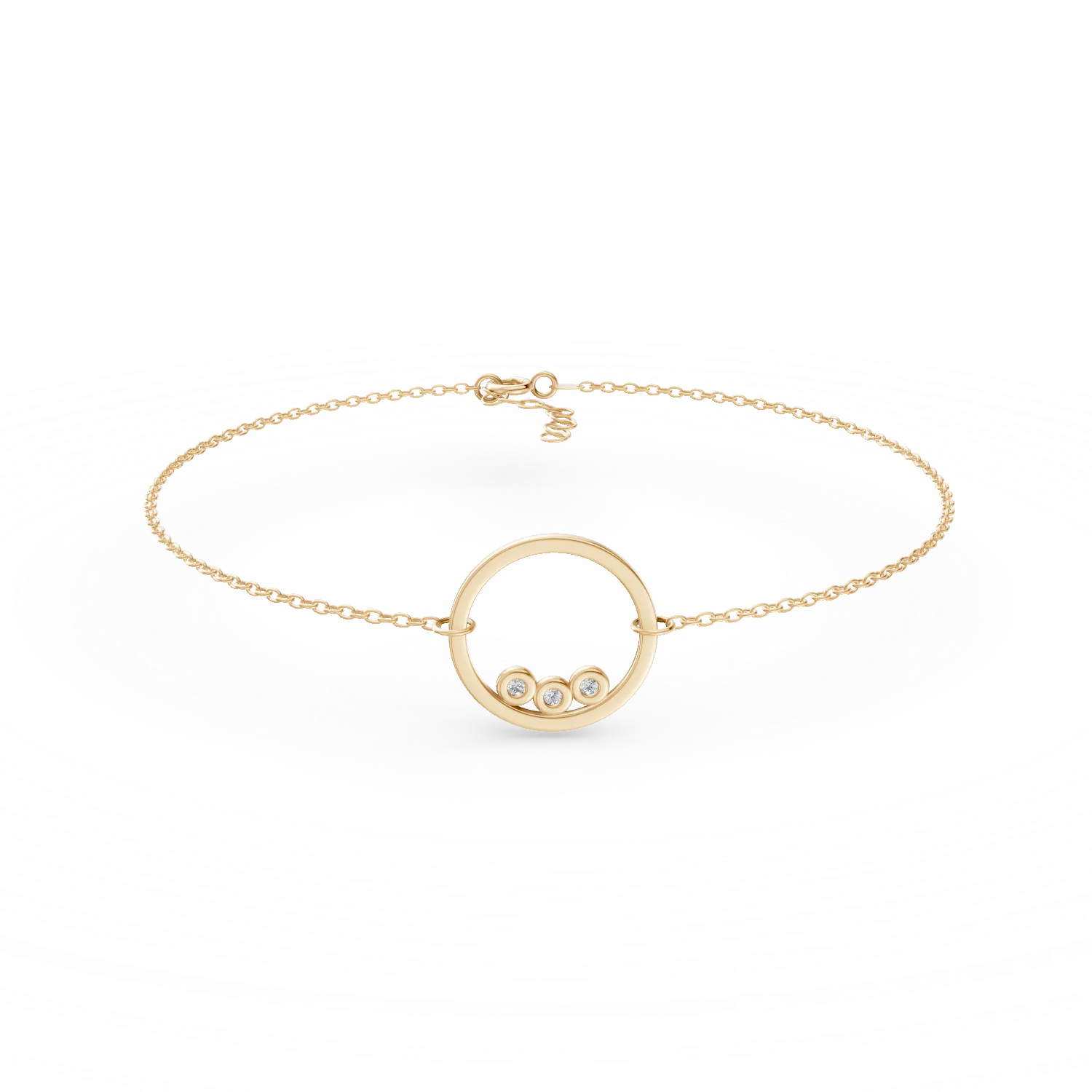 Bijuteriile din aur sunt intotdeauna o alegere potrivita. Designul delicat al bratarii cu pandantiv cerc din aur galben cu zirconii exprima simplu seninatatea si frumusetea ta. TEILOR te inspira sa iti creezi de fiecare data o aparitie memorabila.