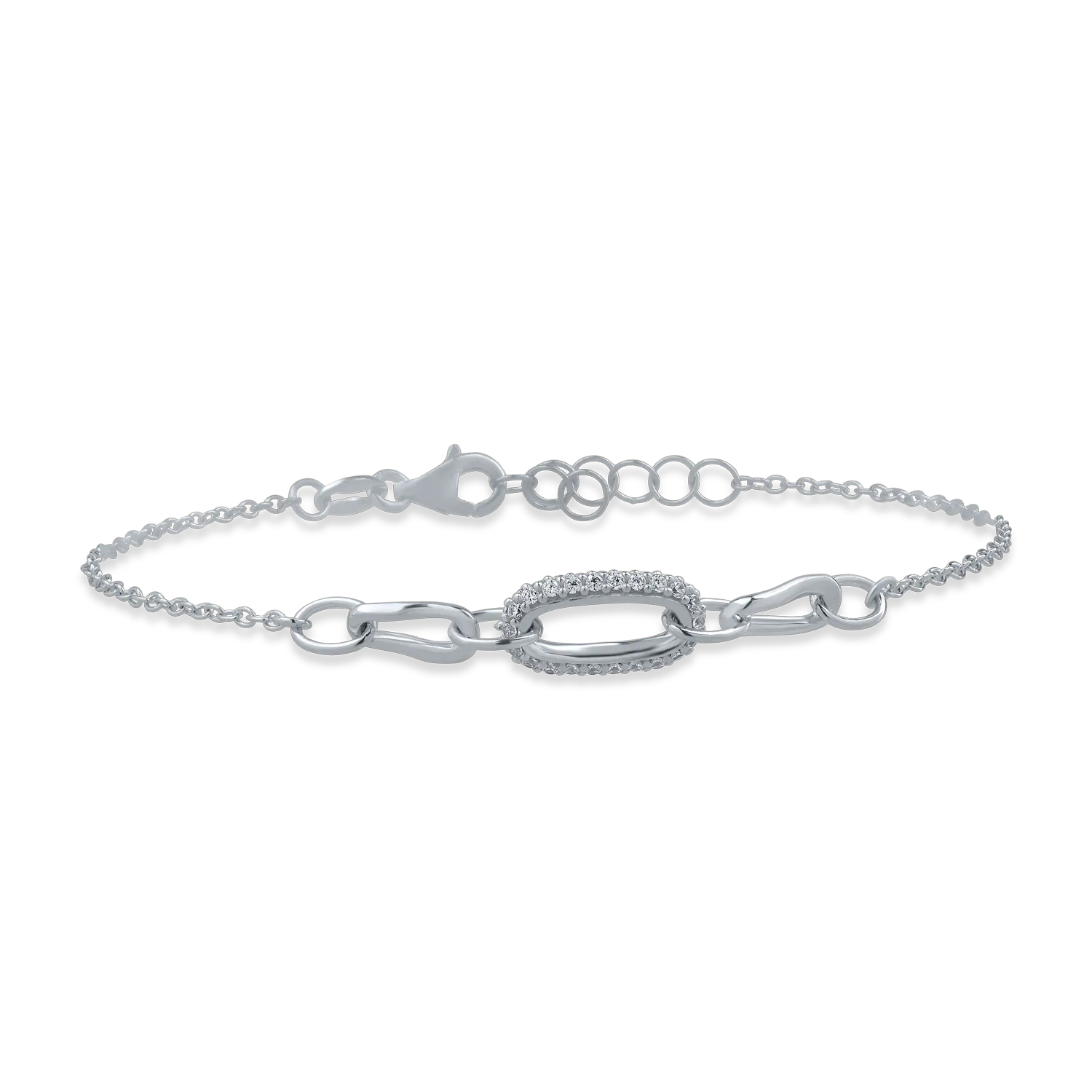 Bratara cu pandantiv geometric din aur alb cu zirconii