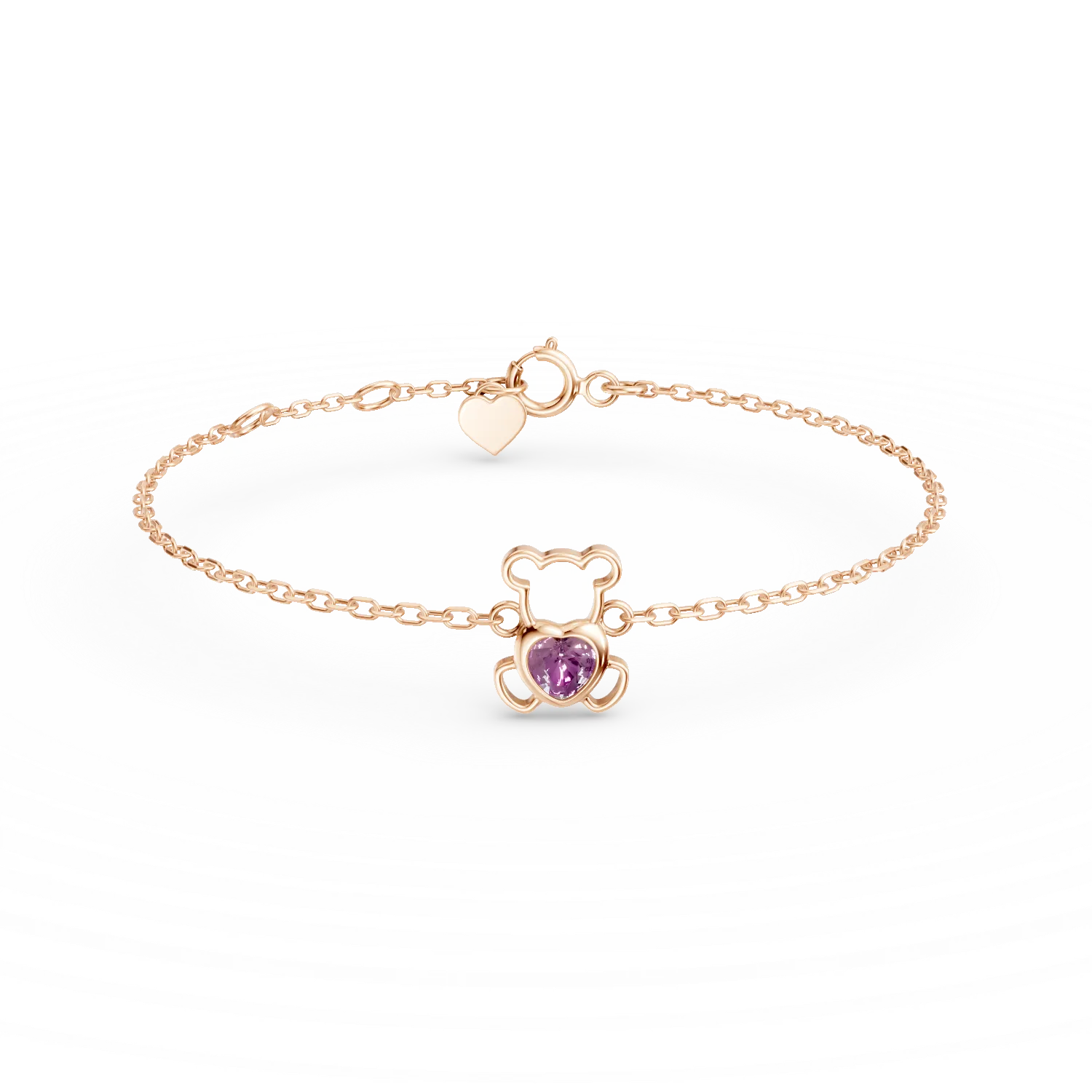 Bratara cu pandantiv ursulet din aur roz cu safir roz heart de 0.1ct pentru copii