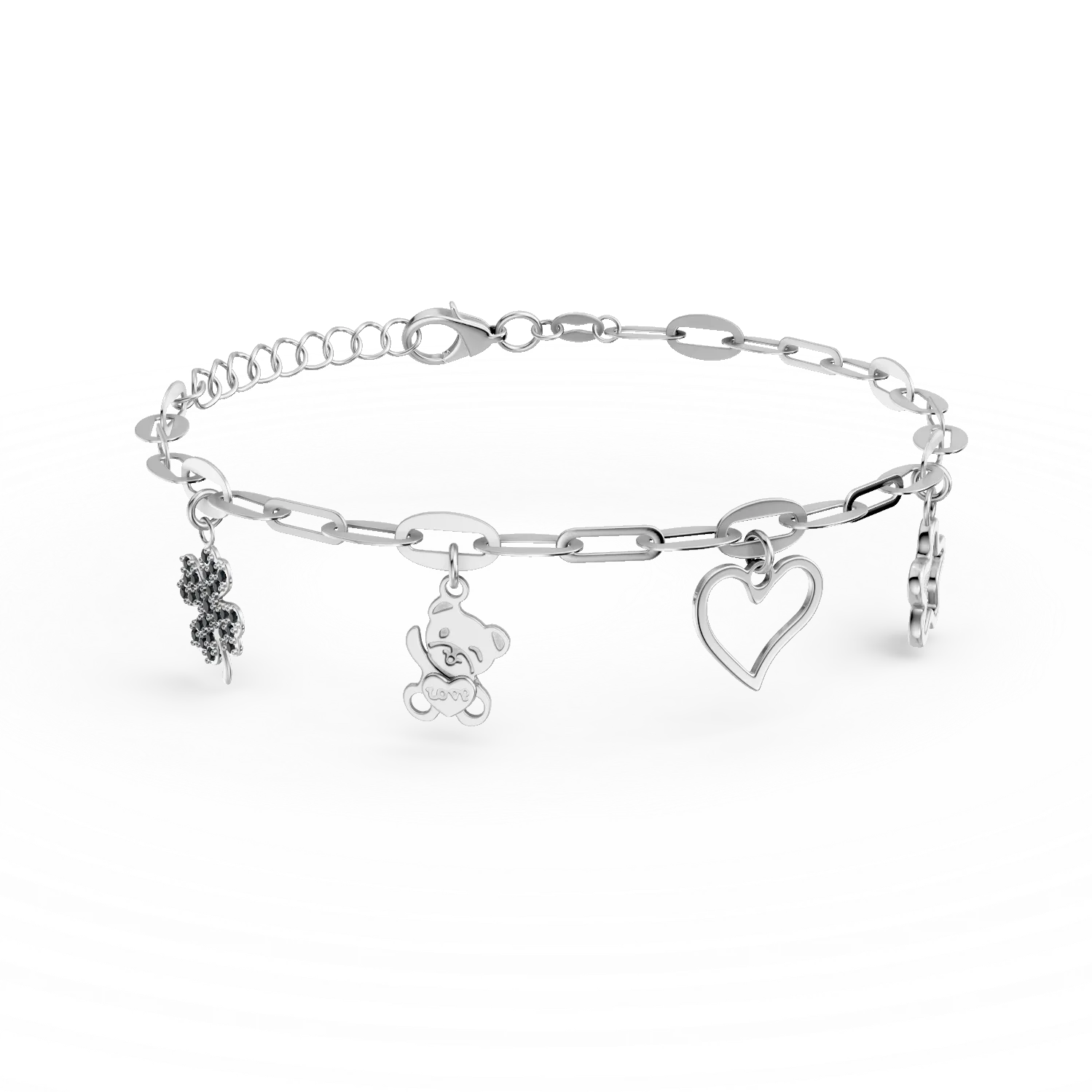 Bratara cu pandantive din aur alb si zirconii negre pentru copii