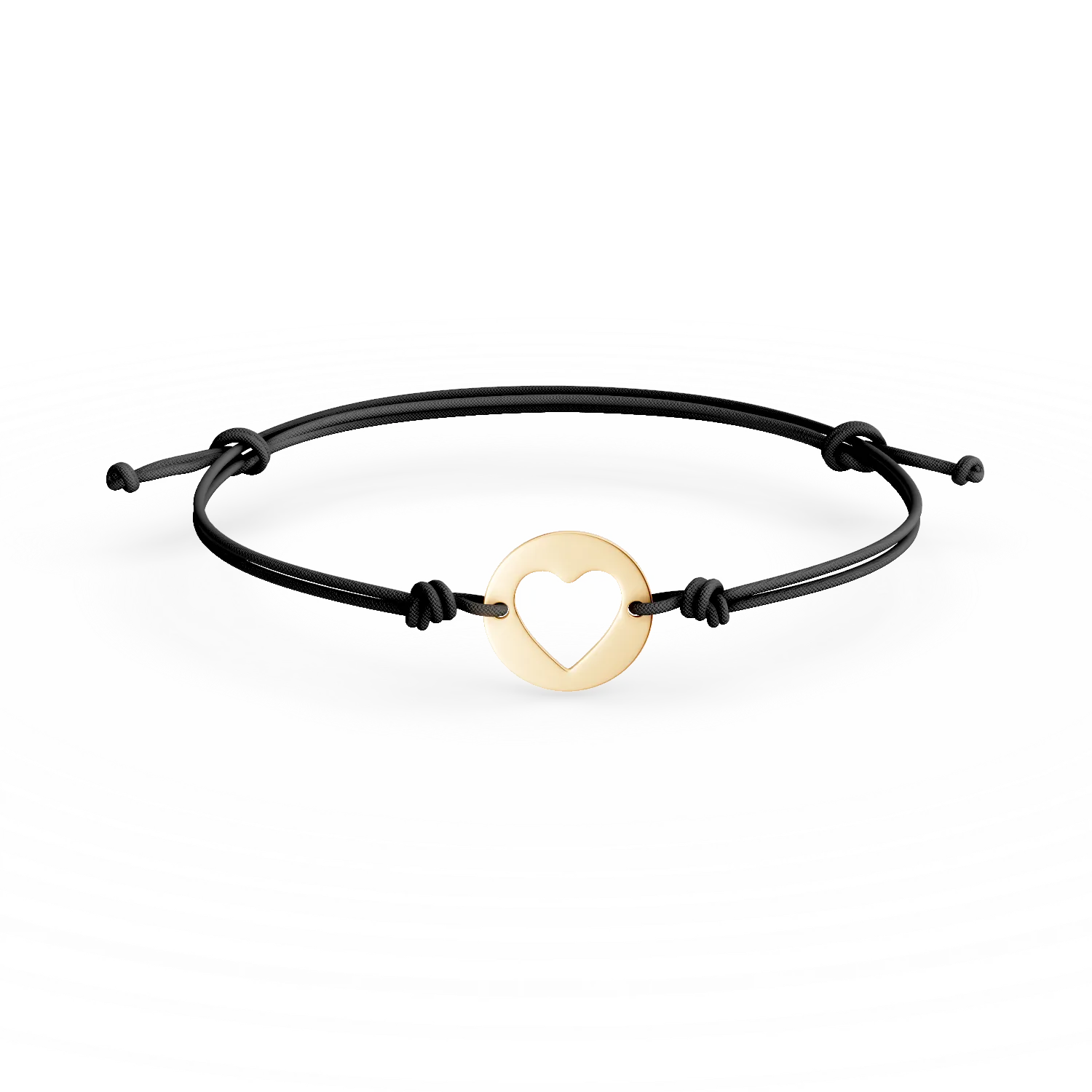 Bijuteriile din aur sunt intotdeauna o alegere potrivita. Un joc seducator de forme care iti inconjoara gratios incheietura mainii – o bratara cu snur si pandantiv inimioara din aur galben fascinanta care te captiveaza. Gaseste-ti modelul pereche in colectiile TEILOR.