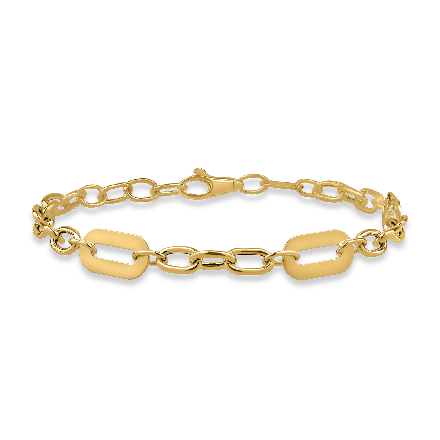 Descopera noua ta bijuterie preferata. Un joc seducator de forme care iti inconjoara gratios incheietura mainii – bratara cu zale din aur galben te captiveaza. Alege accesoriile care transmit mai mult decat cuvintele.