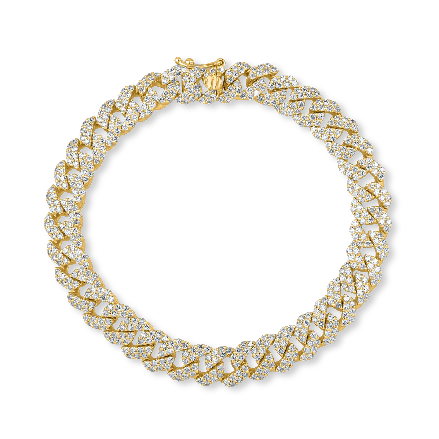 Descopera stralucirea in toate formele ei in colectiile de bratari TEILOR. Bratara cuban din aur galben cu diamante de 4ct este o interpretare moderna a rafinamentului clasic. Lantul cu zale masive si randurile de diamante perfect aliniate creeaza o compozitie echilibrata, spectaculoasa si sofisticata. Este o piesa care atrage privirile si subliniaza forta stilului tau personal. Un joc de lumini si forme care iti inconjoara incheietura cu eleganta. Poarta modelele TEILOR ca parte din tine. Alege-le pentru ca te definesc!