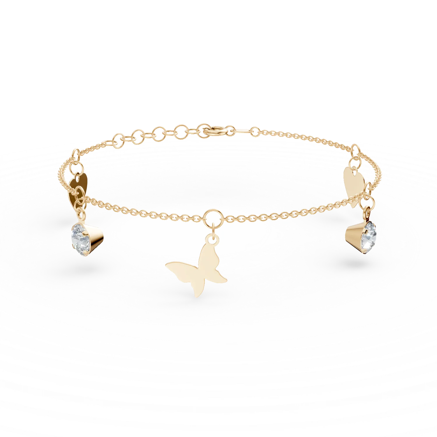 Abordeaza un stil inedit cu bijuteriile pe care le alegi. Cu un design original, bratara de picior cu charmuri si zirconii din aur galben inspira un aer urban. Poarta piesele care te definesc.