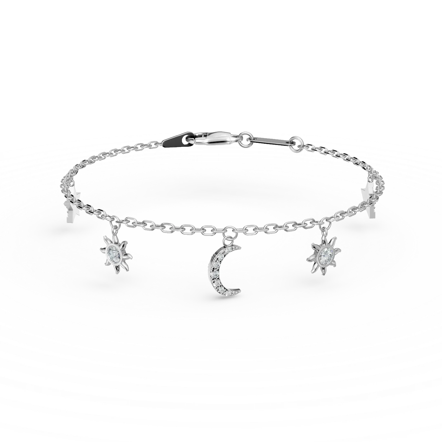 Bijuteriile din aur sunt intotdeauna o alegere potrivita. Un joc seducator de forme care iti inconjoara gratios incheietura mainii – o bratara din aur alb cu charmuri fascinanta care te captiveaza. O noua oportunitate. Un nou inceput alaturi de TEILOR.