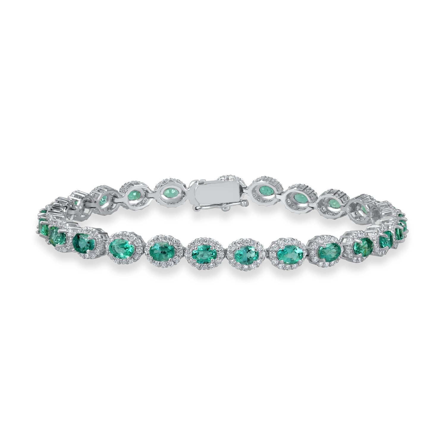 Bratara din aur alb cu smaralde ovale de 4.1ct si diamante de 1.8ct