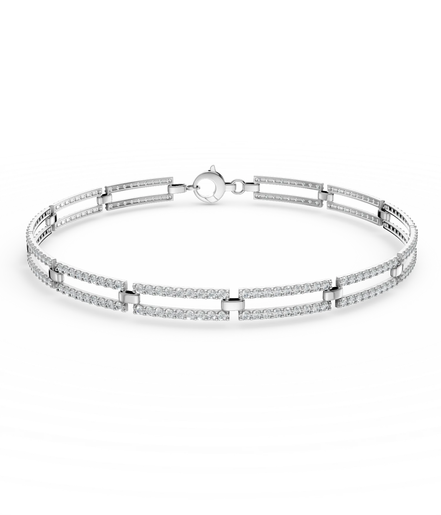 Bijuteriile din aur sunt intotdeauna o alegere potrivita. Designul acestei bratari din aur alb cu zirconii este pus in valoare de detaliile atent conturate. TEILOR este o invitatie la eleganta si rafinament.