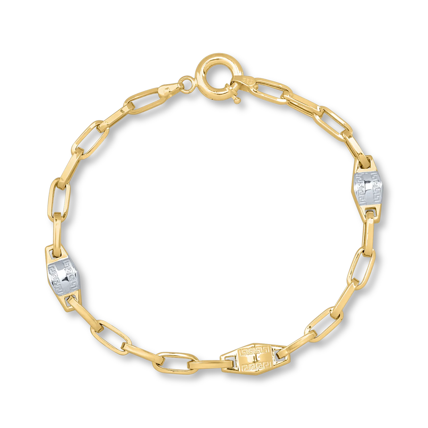 Descopera stralucirea in toate formele ei in colectiile de bratari. Cu design atemporal si detalii discrete, aceasta bratara din aur alb-galben este accesoriul ideal atunci cand vrei sa transmiti incredere la fiecare pas. Alege accesoriile care transmit mai mult decat cuvintele.