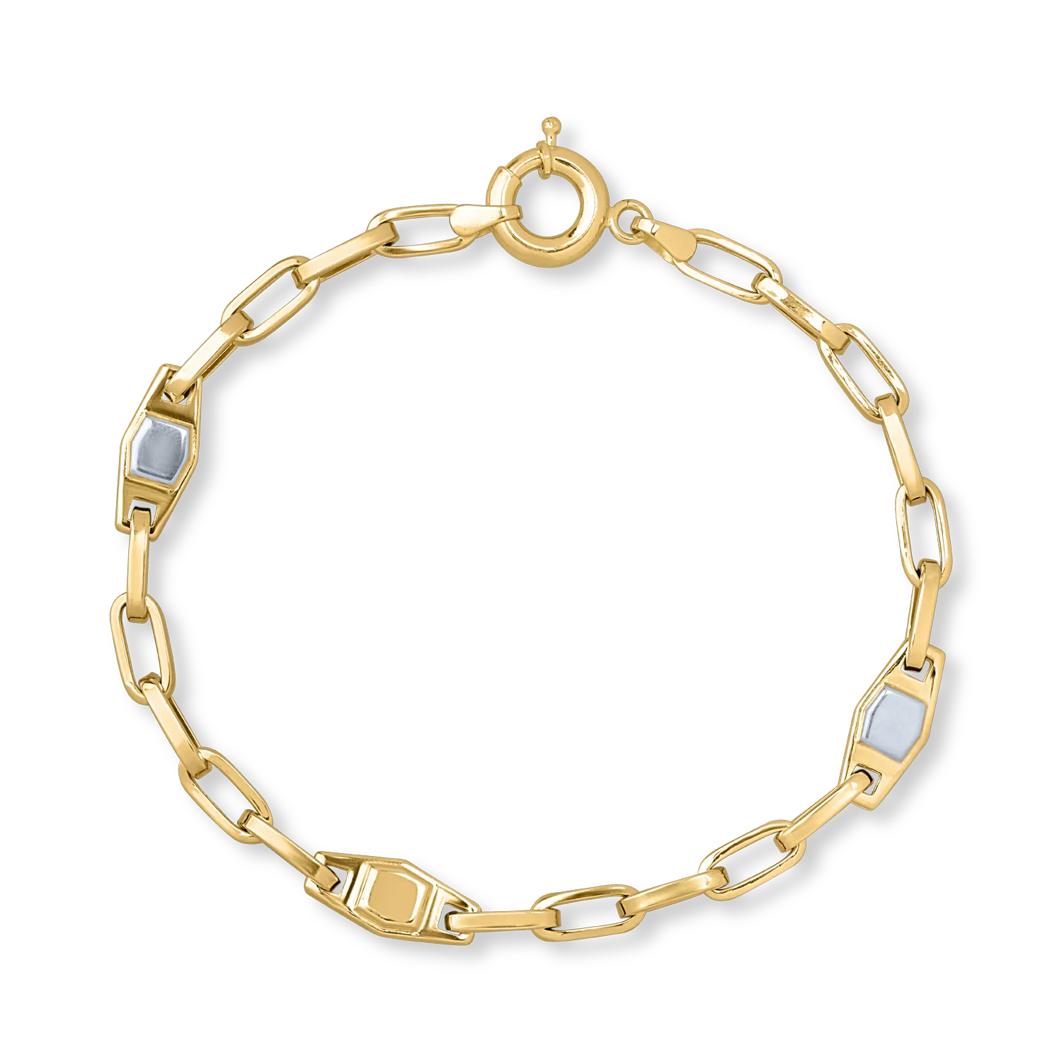 Bijuteriile din aur sunt intotdeauna o alegere potrivita. Seducatoare si indrazneata, aceasta bratara din aur alb-galben iti complimenteaza orice look. Poart-o cu incredere si alege sa te defineasca. Fii tu – frumoasa si increzatoare.