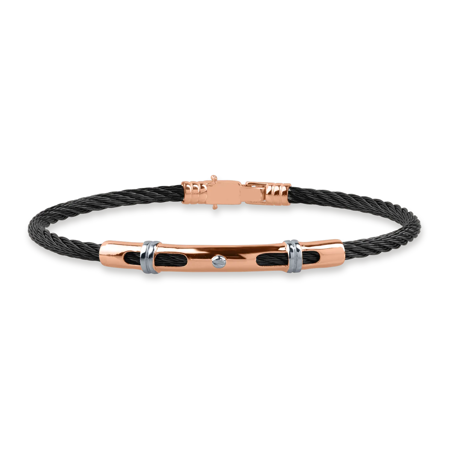 Eleganta este un stil de viata. Realizata pentru cei care isi seteaza mereu noi provocari, aceasta bratara din aur alb-roz si otel pentru barbati se remarca prin complexitatea designului si finisajul metalului lucios. Alege bijuteriile care vorbesc despre tine.