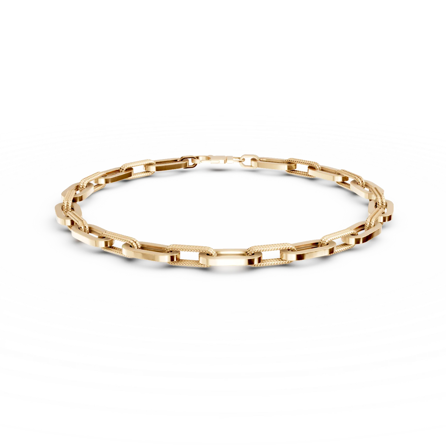 Bijuteriile din aur sunt intotdeauna o alegere potrivita. Cu design atemporal si detalii discrete, bratara din aur galben este accesoriul ideal atunci cand vrei sa transmiti incredere la fiecare pas. Gaseste-ti modelul pereche in colectiile TEILOR.