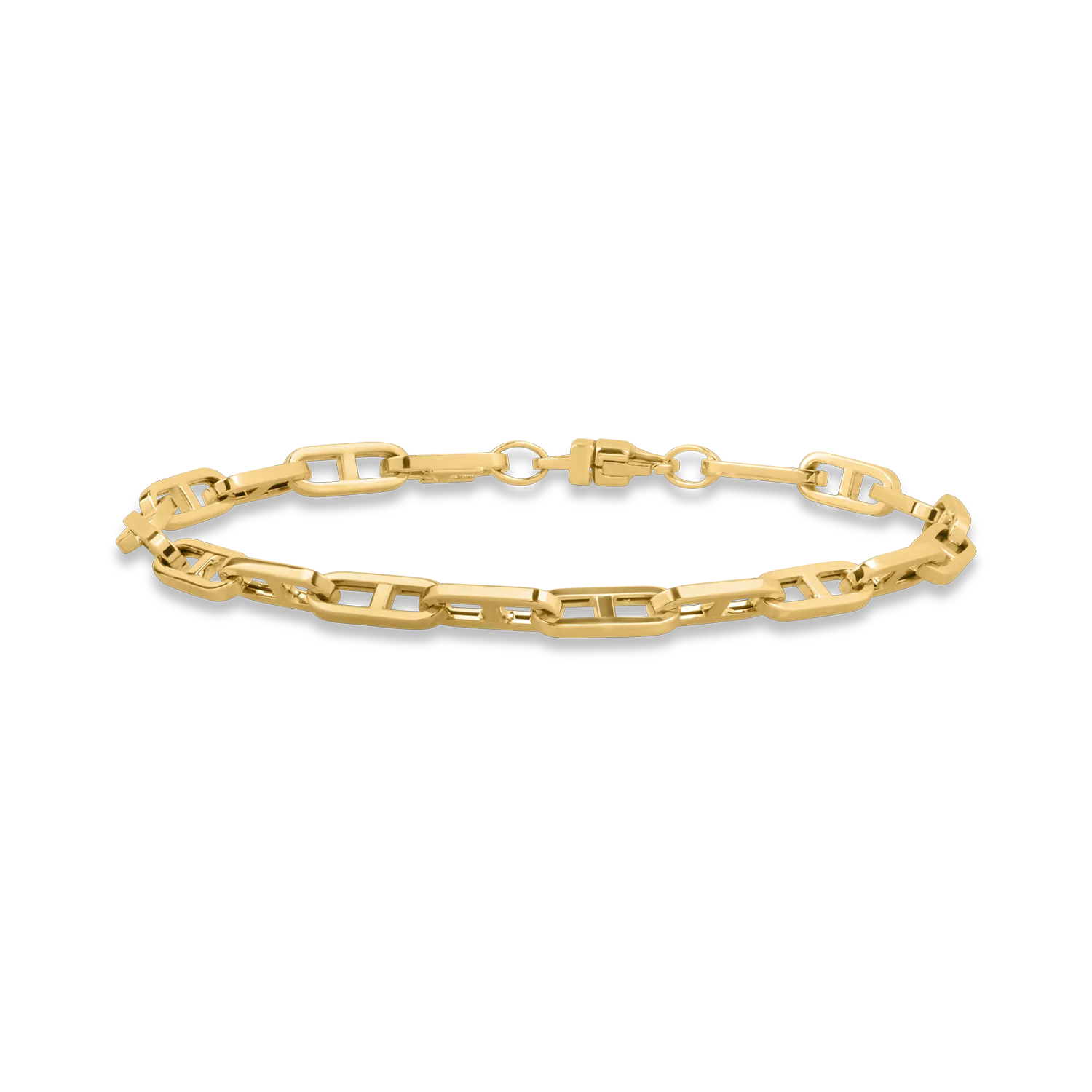 Bijuteriile din aur sunt intotdeauna o alegere potrivita. Cu design atemporal si detalii discrete, aceasta bratara din aur galben este accesoriul ideal atunci cand vrei sa transmiti incredere la fiecare pas. Alege accesoriile care transmit mai mult decat cuvintele.