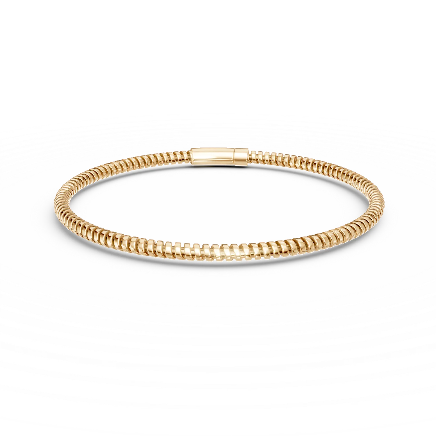 Ramai stralucitoare, poarta bijuterii care iti contureaza stilul. Realizata intr-o perfecta armonie de volume si forme, bratara din aur galben este o inspiratie in sine. Bucura-te intotdeauna de creativitate cu TEILOR.