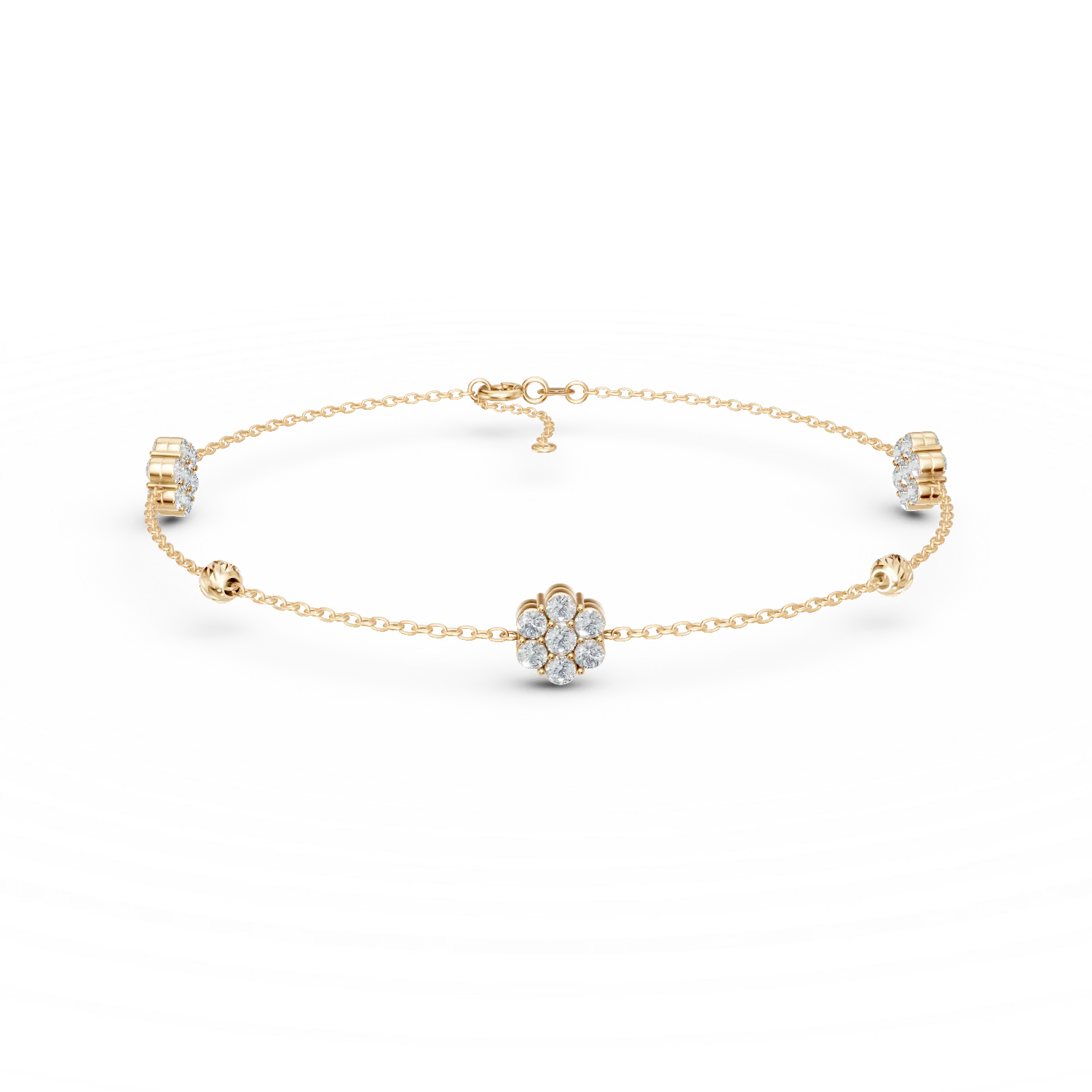 Bijuteriile din aur sunt intotdeauna o alegere potrivita. Inspirata din spiritul liber al peisajului urban, bratara din aur galben cu bilute si pandantive floare te captiveaza cu frumusetea ei. TEILOR este o invitatie la eleganta si rafinament.