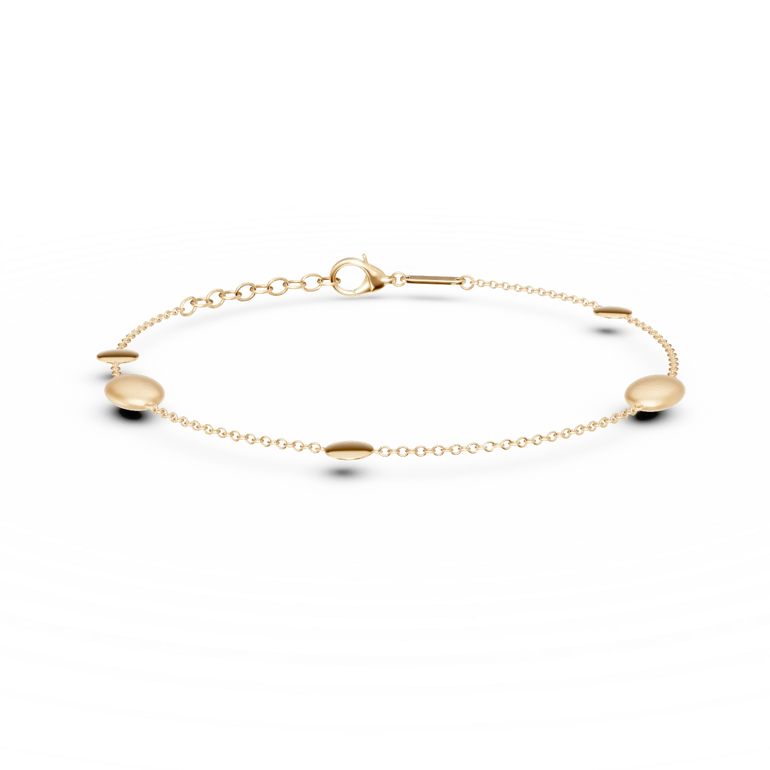 Bijuteriile din aur sunt intotdeauna o alegere potrivita. Un joc seducator de forme care iti inconjoara gratios incheietura mainii – o bratara din aur galben cu bilute fascinanta care te captiveaza. Gaseste-ti modelul pereche in colectiile TEILOR.