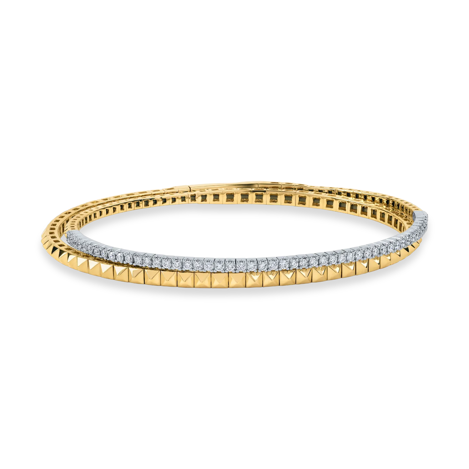 Bijuteria este declaratia unica a rafinamentului. Bratara din aur galben cu diamante de 0.64ct se remarca prin armonia formelor si eleganta clasica reinterpretata in tonuri moderne. Reflexiile calde ale aurului evidentiaza stralucirea pietrelor, oferind o luminozitate distincta. Este o piesa rafinata, ce adauga un plus de eleganta si distinctie oricarei aparitii. TEILOR – sursa ta de inspiratie si expresia rafinamentului autentic!
