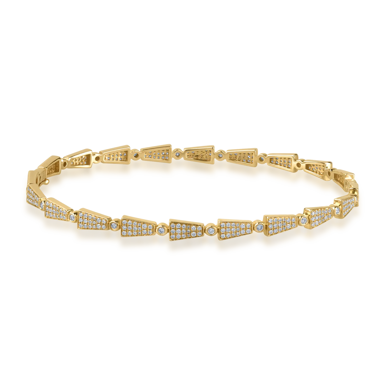 Descopera noua ta bijuterie preferata. Culoarea metalului pretios si designul simetric al bratarii din aur galben cu diamante de 1.1ct se imbina intr-o asociere de forme si contururi care inspira echilibru si eleganta. Fiecare diamant, atent slefuit, contribuie la stralucirea subtila a piesei, facand-o ideala atat pentru tinutele de zi, cat si pentru cele de seara. Bratara devine o expresie autentica a rafinamentului si feminitatii tale. Un accesoriu pe care iti doresti sa il porti iar si iar. Alege sa iti fie sursa de inspiratie cu TEILOR!