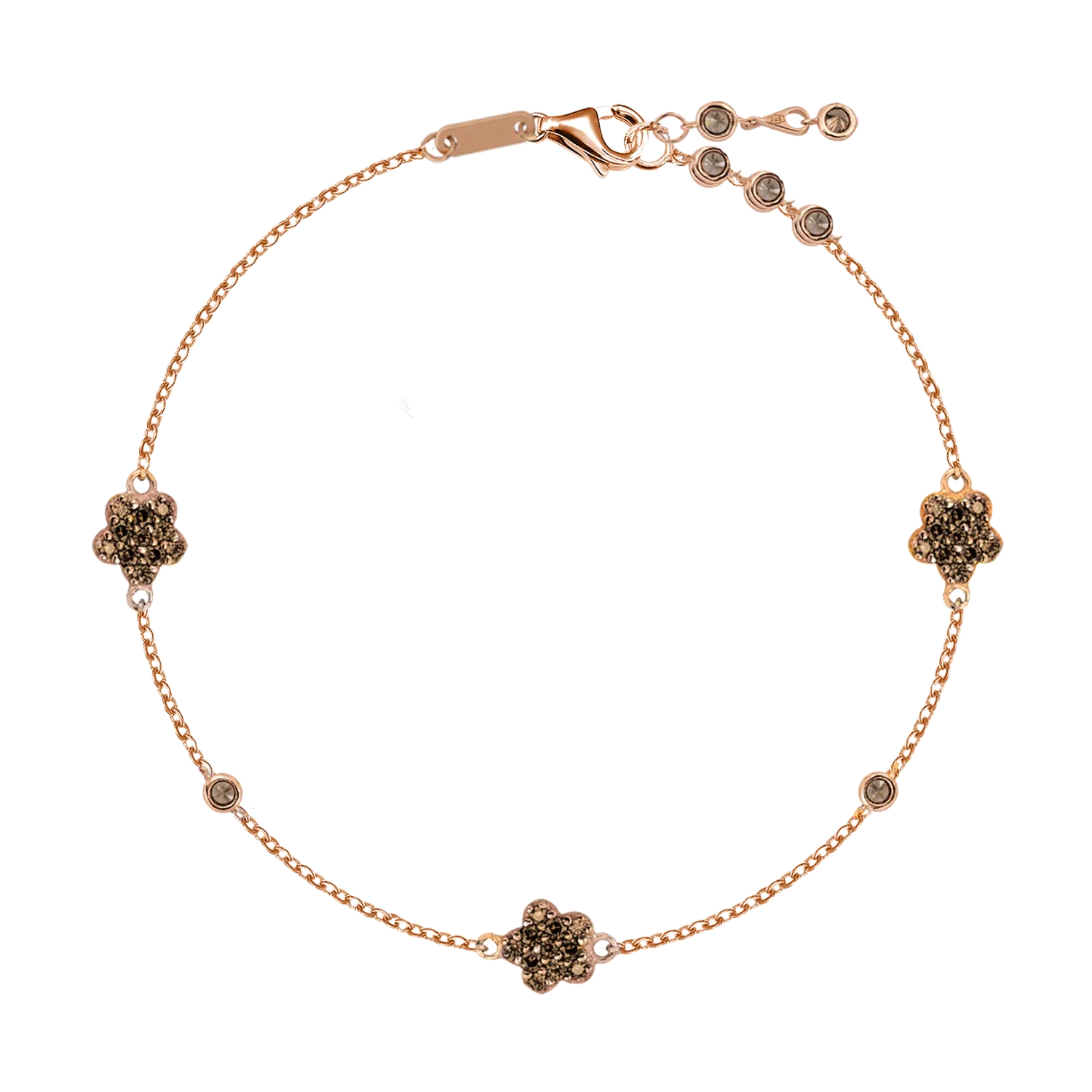 Bijuteriile din aur sunt intotdeauna o alegere potrivita. Cu un design fluid, aceasta bratara din aur roz cu pandantive floare se adapteaza perfect look-ului tau de zi cu zi. Gaseste-ti modelul pereche in colectiile TEILOR.