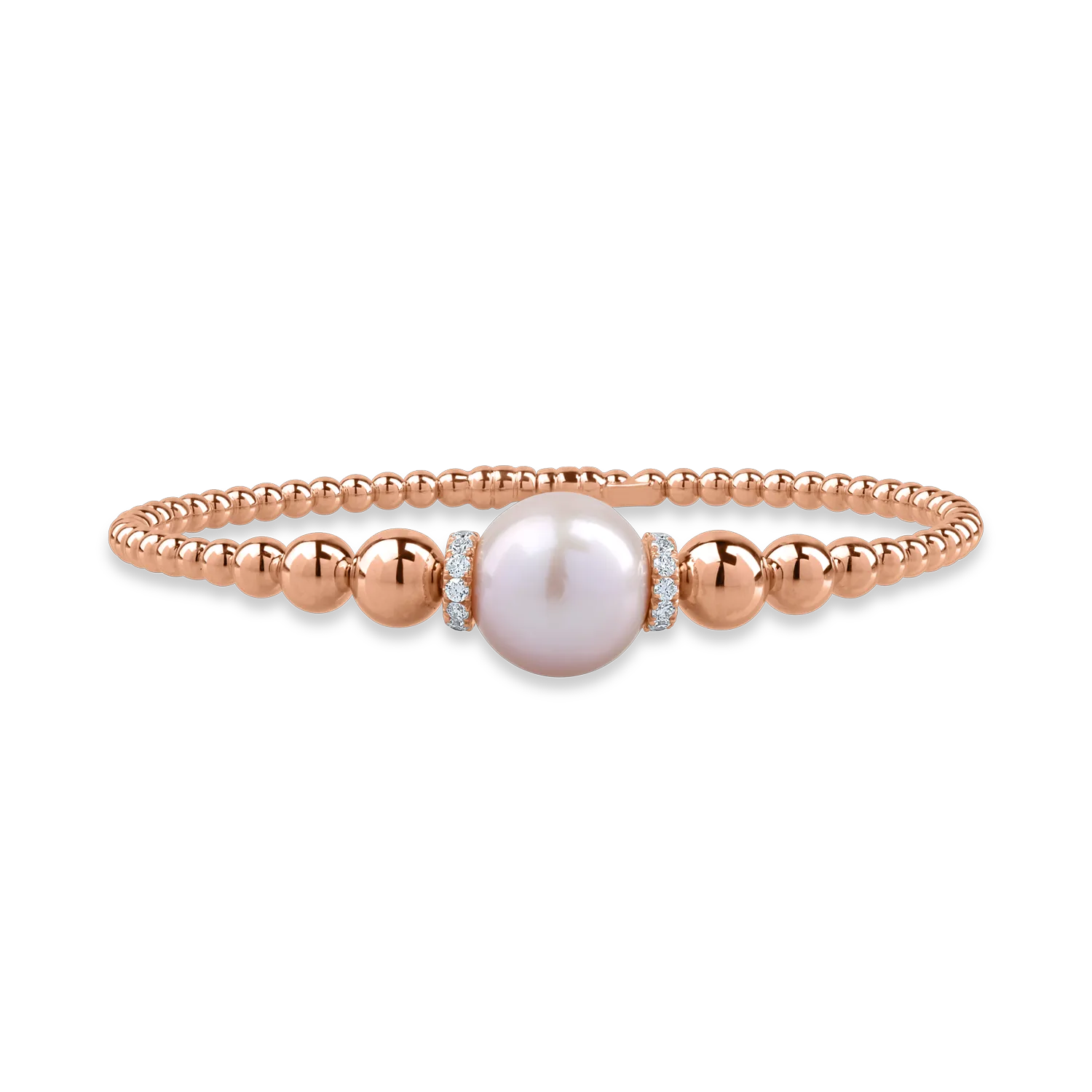 Bratara din aur roz cu perla de cultura de 14.5ct si diamante de 0.25ct