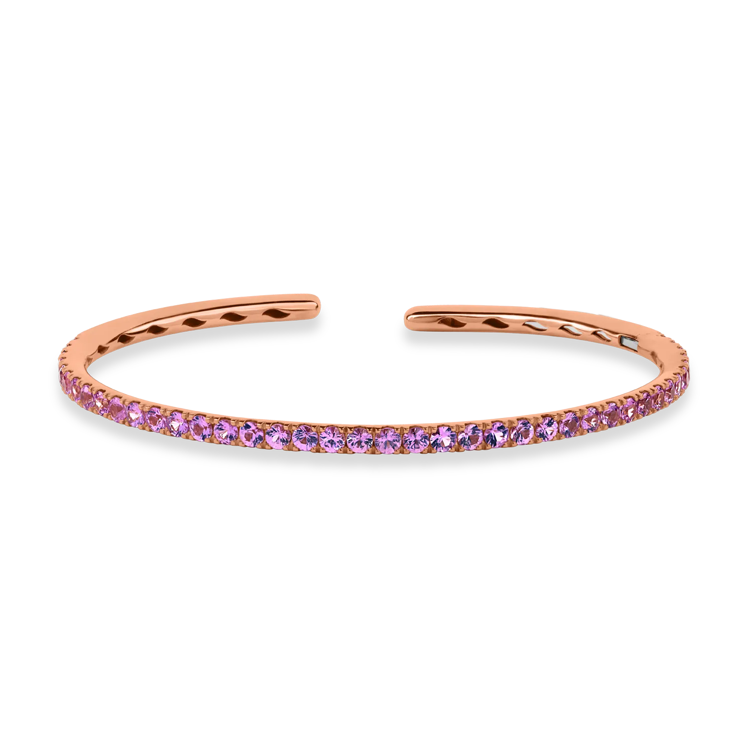 Daruieste-ti un cadou care te reprezinta in totalitate. Bratara din aur roz cu safire roz de 2.96ct este o expresie a luxului rafinat si a feminitatii desavarsite. Safirele stralucesc intr-un spectru delicat de culori, iar aurul roz le completeaza perfect, adaugand o nota de caldura si armonie. Designul sau elegant o face usor de integrat in orice tinuta. Este bijuteria care aduce un plus de farmec si individualitate. TEILOR – sursa ta de inspiratie si rafinament!