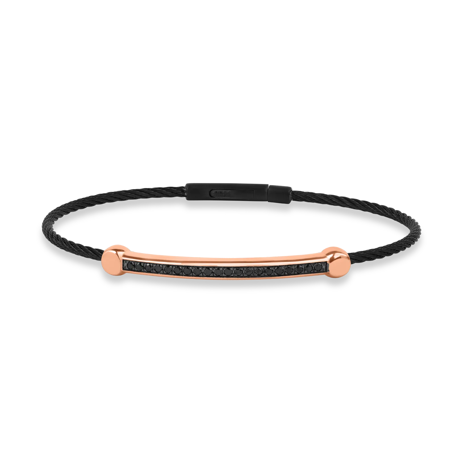 Bratara din aur roz si otel cu diamante negre de 0.33ct pentru barbati