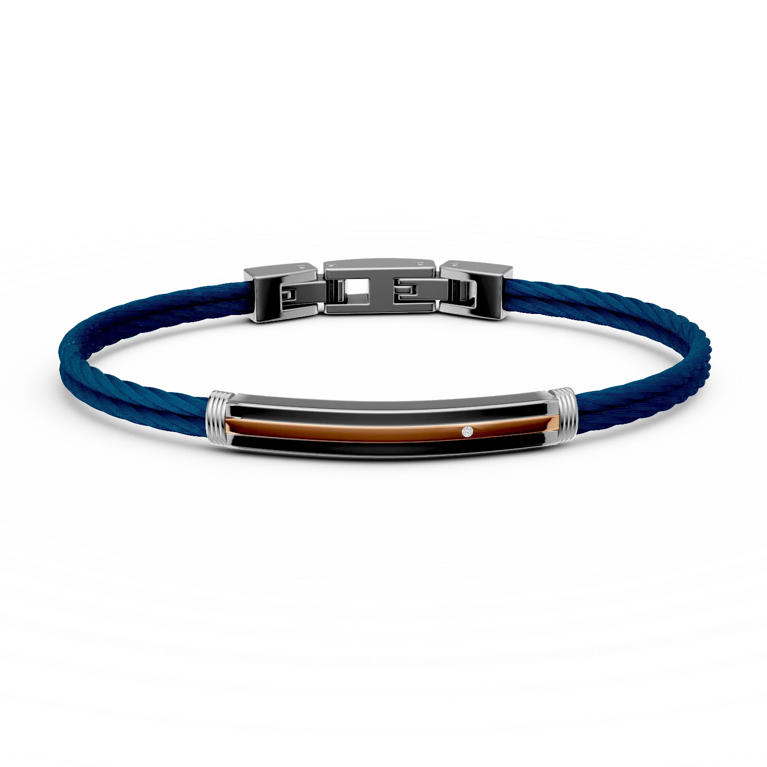 Bratara din otel alb-roz-albastru cu diamant 0.002ct pentru barbati