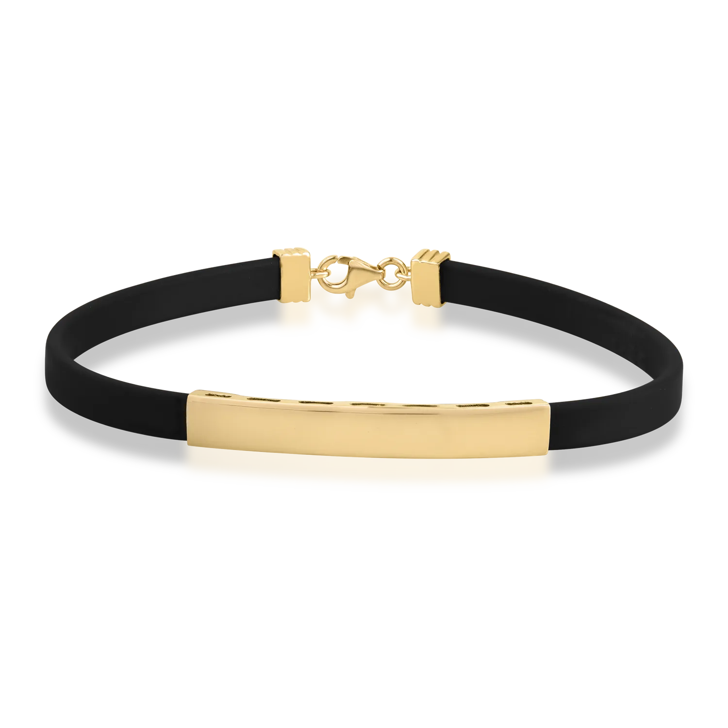 Bijuteriile din aur sunt intotdeauna o alegere potrivita. Cu un design fluid, aceasta bratara din silicon cu placuta din aur galben se adapteaza perfect look-ului tau de zi cu zi. TEILOR te inspira sa iti creezi de fiecare data o aparitie memorabila.