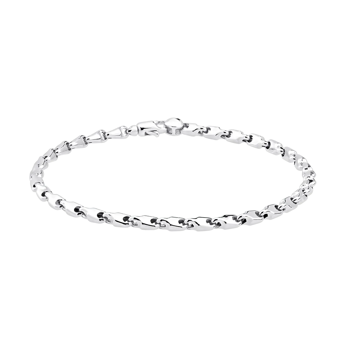 Spune o poveste cu fiecare bijuterie pe care o porti. Un joc seducator de forme care iti inconjoara gratios incheietura mainii – o bratara minimalista din aur alb fascinanta care te captiveaza. Poart-o cu incredere si alege sa te defineasca. Fii tu – frumoasa si increzatoare.