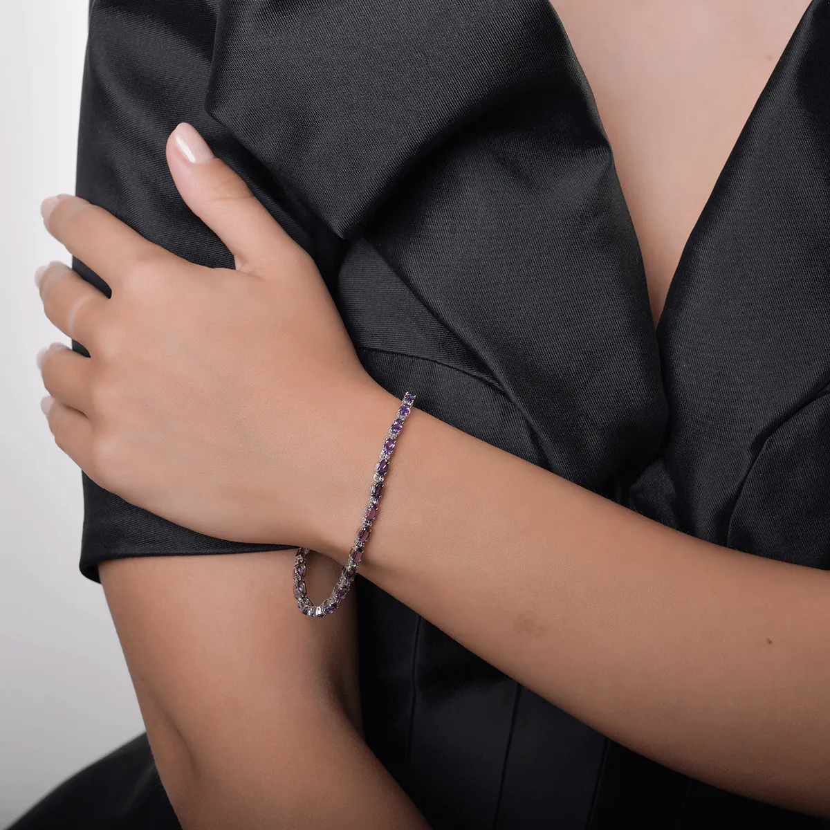 Bratara tennis din aur alb cu ametiste ovale de 5.31ct si diamante de 0.25ct