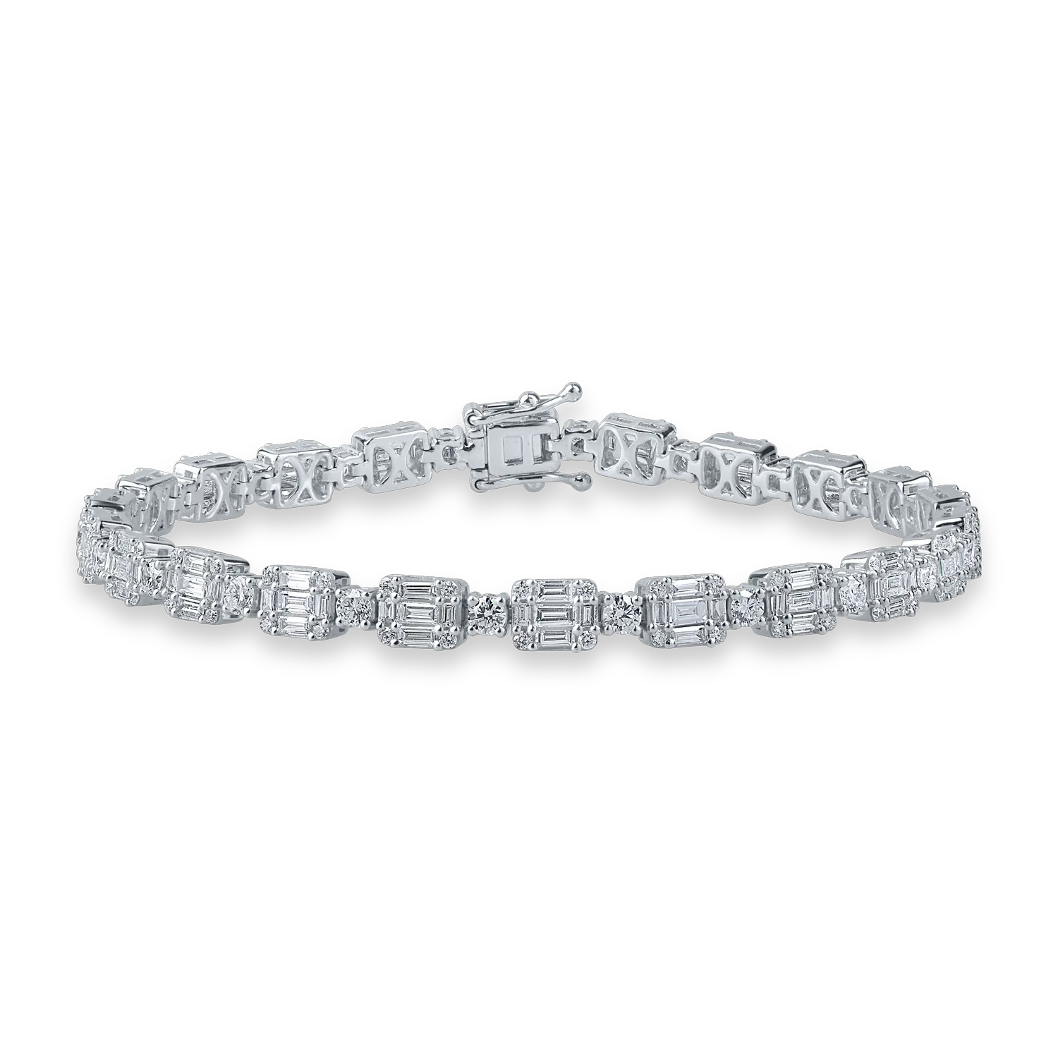 Bratara tennis din aur alb cu diamante baguette si rotunde de 3.7ct
