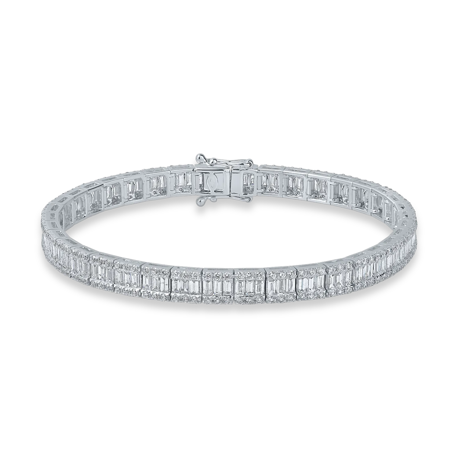 Bratara tennis din aur alb cu diamante baguette si rotunde de 4ct