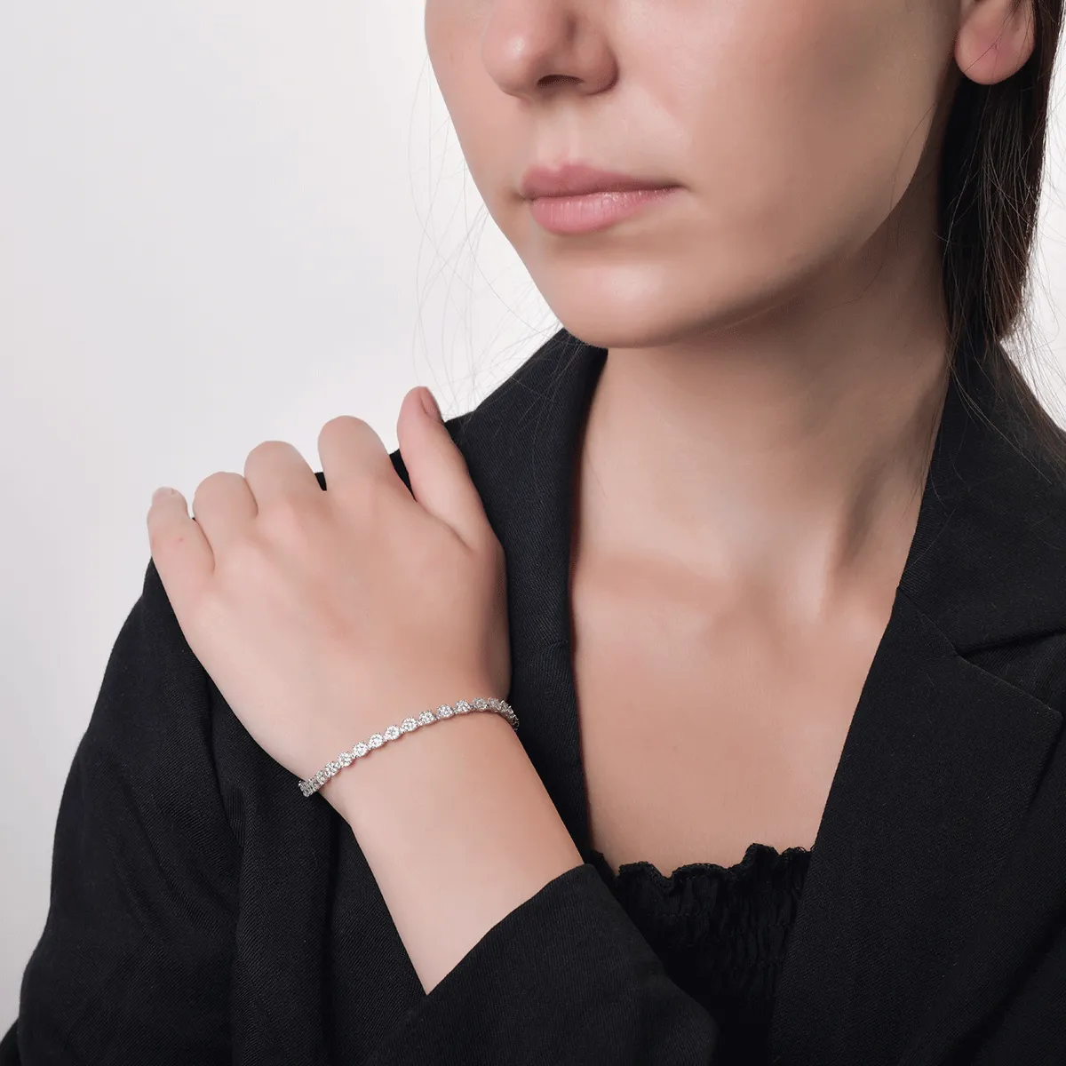 Poarta bijuteriile care te definesc. Bratara tennis din aur alb cu diamante de 2ct este un clasic reinterpretat cu rafinament modern. Pietrele stralucesc cu o intensitate impecabila, adaugand un strop de lumina fiecarui moment. Este o piesa ce imbina perfect simplitatea eleganta cu detaliile sofisticate, ideala pentru femeia care prefera frumusetea autentica. Liniile curate si echilibrul perfect al designului transforma aceasta bratara intr-un simbol al feminitatii. TEILOR este despre tine. Despre bucuria fiecarei clipe!