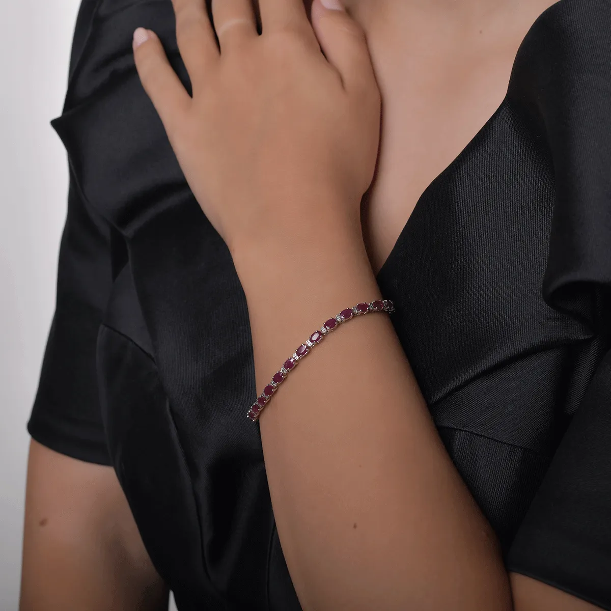Bratara tennis din aur alb cu rubine ovale de 7.66ct si diamante de 0.23ct